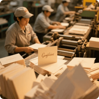 Cards undergo quality checks, cutting, and optional embossing or special finishes for a professional look.